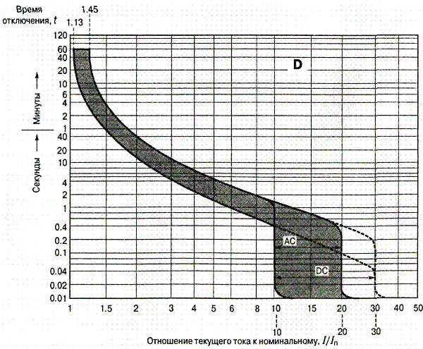 Õàðàêòåðèñòèêà ñðàáàòûâàíèÿ ðàçìûêàþùèõ óñòðîéñòâ àâòîìàòè÷åñêèõ âûêëþ÷àòåëåé çàâèñèò îò òèïà ïîäêëþ÷àåìîé íàãðóçêè.