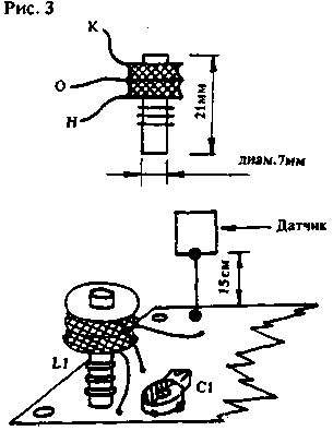Äàò÷èê óñòàíàâëèâàåòñÿ ïåðïåíäèêóëÿðíî ïëîñêîñòè ïå÷àòíîé ïëàòû. Îí ïðåäñòàâëÿåò ñîáîé îòðåçîê èçîëèðîâàííîãî ìîíòàæíîãî ïðîâîäà äëèíîé îò 15 äî 100 ñì, ëèáî êâàäðàò, âûïîëíåííûé èç òàêîãî æå ïðîâîäà, ñî ñòîðîíàìè îò 15 ñì äî 1ì.