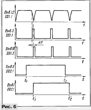 ЭНЦИКЛОПЕДИЯ РАДИОЭЛЕКТРОНИКИ И ЭЛЕКТРОТЕХНИКИ Программируемый управляющий автомат. Энциклопедия радиоэлектроники и электротехники Энциклопедия радиоэлектроники и электротехники / Часы, таймеры, реле, коммутаторы нагрузки Для управления различного рода электроустановками в быту и на производстве нередко возникает необходимость многократного их включения и выключения через определенные временные интервалы. Эта задача обычно успешно решается с помощью цифровых таймеров с памятью. В публикуемой ниже статье вниманию читателей предлагается описание варианта устройства такого назначения, которое можно изготовить самостоятельно. Программируемый автомат предназначен для управления сетевыми электроприборами малой и средней (до 1 кВт) мощности. В быту он может быть использован, например, для управления люстрой Чижевского или электроотопительными приборами в жилом помещении. Автор использовал автомат для управления компьютером, связывающимся с BBS в ночное время суток. Автомат содержит два идентичных независимых программируемых канала, каждый из которых управляет одной нагрузкой. Число каналов может быть произвольно увеличено без принципиальных доработок базовых узлов самого устройства. Во время его работы происходит отсчет реального времени и индикация текущего значения в часах и минутах, а также порядковых номерах (от 1 до 7) дней недели. Максимальная длительность управляющей программы в каждом из каналов составляет одни сутки, однако при необходимости пользователь может разрешить или запретить выполнение записанной в память суточной программы в любые из семи суток недели. Минимальный программируемый интервал между двумя событиями составляет одну минуту. Под событием здесь понимается включение или выключение управляемой нагрузки. Таким образом, максимальное количество программируемых событий равно числу минут в сутках, т. е. 1440. В любой момент времени с помощью органов управления можно изменить текущие состояния нагрузок. Очистка (обнуление) памяти перед программированием производится автоматическим перебором адресов по команде пользователя в обоих каналах сразу или в каждом отдельно. При программировании предусмотрена возможность как поадресной записи, так и поадресного стирания данных в памяти. В автомате имеется генератор ЗЧ, который может подавать звуковые сигналы в моменты наступления каждого запрограммированного события. При отключении сетевого напряжения предусмотрено автоматическое переключение цифровой (слаботочной) части устройства на питание от резервной батареи, что позволяет сохранить непрерывный счет времени и избежать изменений текущих состояний управляющих нагрузками триггеров. Структурная схема автомата приведена на рис. 1. Он состоит из блока счета и индикации, двух одинаковых канальных блоков, электронных реле, а также генератора ЗЧ, который может быть подключен к любому из каналов (на схеме, например, к каналу 1). В блоке счета и индикации происходит отсчет текущего времени и дня недели, отображение их значений на индикаторах, а также формирование адресов для оперативной памяти каналов. Узел управления устанавливает счетчики в нужное положение и производит операции с памятью каналов. Синхронизатор вырабатывает счетные и управляющие последовательности импульсов. ОЗУ хр