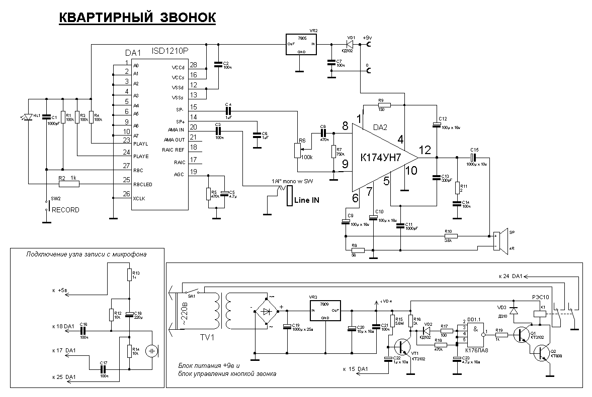 Квартирный звонок на микросхеме ISD1210P. Энциклопедия радиоэлектроники и электротехники