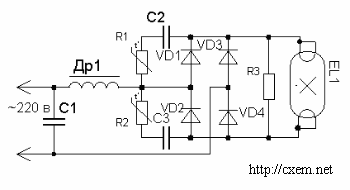 Схема питания ламп дневного света. Энциклопедия радиоэлектроники и электротехники