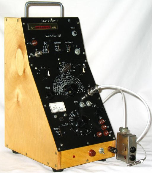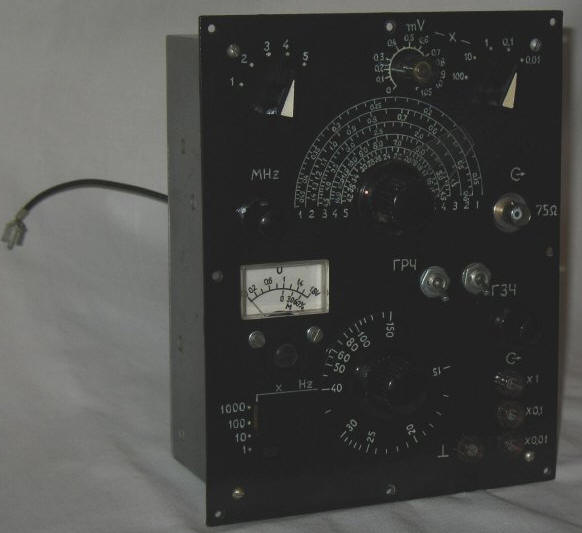 ЭНЦИКЛОПЕДИЯ РАДИОЭЛЕКТРОНИКИ И ЭЛЕКТРОТЕХНИКИ Любительский ГСС. Энциклопедия радиоэлектроники и электротехники Энциклопедия радиоэлектроники и электротехники / Измерительная техника ГСС предназначен для разнообразных измерений в любительской практике как источник синусоидального напряжения звуковой (ЗЧ) и радиочастоты (РЧ). Обладает, по мнению автора, достаточно высокими метрологическими характеристиками. Диапазон частот 15Гц….44,5МГц перекрывается двумя генераторами: звуковой (ГЗЧ) и радиочастоты(ГРЧ). При этом первый обеспечивает при необходимости амплитудную модуляцию второго. Особенностью ГРЧ является жесткая стабилизация амплитуды выходного напряжения независимо от частоты, наличие резонансного усилителя, контроль уровня несущей и глубины модуляции, наличие достаточно точного аттенюатора для получения калиброванного по величине выходного напряжения на согласованной нагрузке 75 Ом. ГЗЧ - несколько сокращенный вариант генератора, описанного в [1]. Оба генератора имеют дополнительные внутренние выходы для подачи сигнала на частотомер, имеющийся в одном комплекте с ГСС. Технические характеристики ГЗЧ