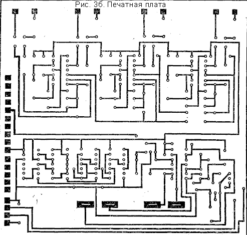 - Блок управления и БУТ собраны на печатной плате размером 130 х 125 мм, изготовленной из двухстороннего фольгированного стеклотекстолита толщиной 2 мм. Схема расположения деталей - здесь, рисунок печатной платы - здесь.