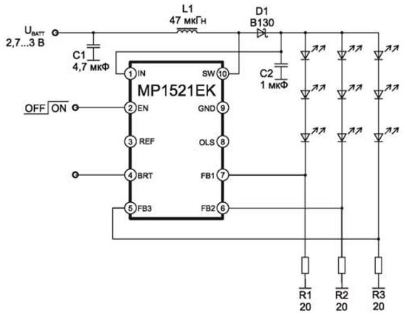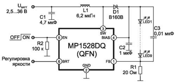 Типовая схема включения микросхемы MP1528 незначительно отличается от остальных рассмотренных выше драйверов (см. рис. 6).