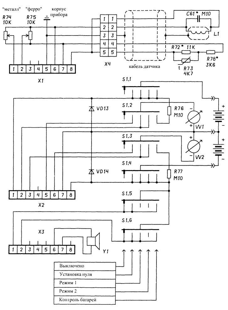 На схеме внешних соединений показаны элементы, не установленные на печатной плате прибора и подключаемые к ней с помощью электрических разъемов. К таким элементам относятся: