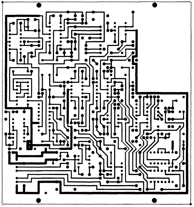 Плотность проводников на печатной плате не слишком высока, что позволяет изготовить рисунок под травление в домашних условиях. Для этого рекомендуется использовать тонкий стеклянный рейсфедер или иглу шприца со спиленным острием в комплекте с пластиковой трубкой.