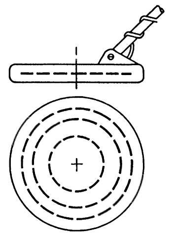Как правило, такими катушками комплектуются приборы для поиска самородного золота. К недостаткам таких катушек относятся неудовлетворительная отстройка от железа и затрудненное определение точного местоположения объекта в грунте. Эти недостатки устранены в последних эллиптических катушках фирмы "Тезоро", которые отличаются высокой чувствительностью, дискриминацией и пинпойнтингом при широком захвате и малом весе. Коаксиальные катушки. Такая конструкция используется в катушках диаметром 2,5-10 см. Высокие требования к точности изготовления делают их достаточно дорогими. Передающая антенна располагается между двумя приемными антеннами. Это создает электромагнитное поле - более или менее однородное по плотности потока. Они обычно не подвержены влиянию помех от высоковольтных линий. Преимущество таких катушек проявляется при работе на сильно замусоренных участках, где они могут обнаруживать ценные объекты, находящиеся в непосредственной близости, например, от гвоздя или пробки. Кроме того, они позволяют работать поблизости от металлических заборов и столбов.