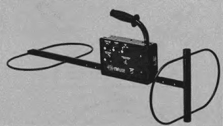 Катушки с разнесенными антеннами. Антенны передатчика и приемника расположены взаимно перпендикулярно и разнесены друг от друга на 1 метр. Применяются в глубинных приборах, обнаруживают крупные предметы на глубине 4-6 м, но не реагируют на мелкие (размером с монету) предметы.