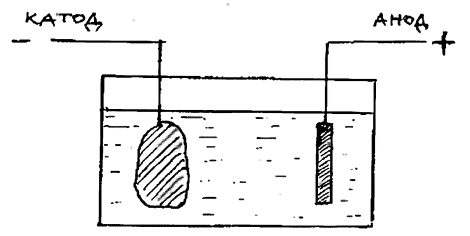 Для чистки больших партий однородных изделий (например) современных монет, можно применять галтовочные барабаны, в которых очищаемые предметы вращаются вместе с наполнителем из деревянных пластмассовых или металлических элементов в мыльной воде в течение нескольких часов. Электролитическая чистка Оборудование для электролитической чистки состоит из трансформатора, выпрямителя и двух электродов - катода (-) и анода (+). К аноду подсоединяется пластина из нержавеющей стали, а к катоду - зажим или проволочная рамка, удерживающие предмет, который должен быть очищен от коррозии. Оба электрода опускают в стеклянный или пластмассовый контейнер, в который наливают электролит. Обычно это вода с небольшим количеством поваренной соли и подходящего чистящего агента, например каустической соды или лимонной кислоты. При включении тока начинается постепенное удаление продуктов коррозии. Время от времени ток выключают и осматривают поверхность изделия. Когда окислы потеряют свою твердость, процесс можно прекратить и дальнейшую чистку проводить механическим способом. Электрохимическая чистка Это другая разновидность электролитической чистки, при которой происходят химические реакции без применения внешнего источника тока. Очищенный предмет помещают в контейнер с раствором и добавляют подходящий металл в виде порошка, как правило, цинк в раствор каустической соды или алюминий в раствор углекислого натрия.
