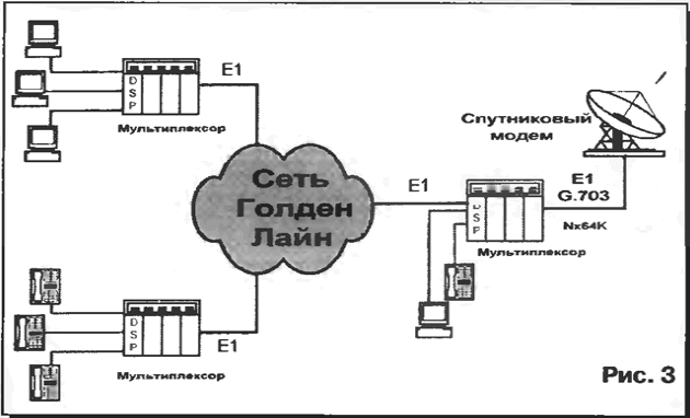 ЭНЦИКЛОПЕДИЯ РАДИОЭЛЕКТРОНИКИ И ЭЛЕКТРОТЕХНИКИ Организация доступа к сетям операторов спутниковой связи. Энциклопедия радиоэлектроники и электротехники Энциклопедия радиоэлектроники и электротехники / Телефония Территория России характеризуется слаборазвитой инфраструктурой цифровых каналов связи, особенно наземных линий. На сегодняшний день наиболее распространенным, а иногда и единственным средством организации связи с высоким качеством является спутниковая связь. На территории России уже развернуто свыше 200 земных станций, работающих с геостационарными спутниками "Горизонт", что позволяет подключать пользователей, находящихся практически в любой точке России. В статье рассматривается, как эффективнее использовать полосы пропускания междугородных и международных линий связи для организации доступа к спутниковым системам и сетям с закрепленными (выделенными) каналами или многократным доступом с временным разделением каналов (Time Division Multiple Access - TDMА). Спектр предоставляемых услуг - передача речи и данных. Российский рынок телекоммуникационных услуг растет с каждым годом. Увеличивается количество компаний, расширяется диапазон предложений и видов услуг, снижаются цены. Особенно это заметно в крупных городах России, где уже сейчас цифровые сети одной или нескольких компаний покрывают практически всю территорию города и любой желающий может получить весь спектр телекоммуникационных услуг, от установки простого телефона до выхода в сеть Интернет или другие информационные и финансовые сети. Если же необходимо связать по выделенному цифровому каналу офисы, находящиеся в разных городах или даже странах, либо получить доступ к телекоммуникационной сети, не представленной в вашем городе, то приходится обращаться не только к местным операторам, но и к операторам междугородной и международной связи (ММС). Благодаря относительной развитости земных станций на территории России уже создается техническая возможность организации междугородных и международных цифровых каналов с помощью спутников. Но стоимость канала DS0 (64 кбит/с) в этом случае будет в 4...7 раз выше, чем канала с такой же скоростью, но в пределах города. На такие затраты могут пойти немногие потенциальные пользователи. Как же снизить затраты на междугородном или международном участке и таким образом расширить спектр пользователей? Возможный вариант решения - объединение в городских наземных проводных сетях несколько низкоскоростных каналов пользователей в один канал DS0 (64 кбит/с) с последующей передачей его на спутниковую систему. Сказанное позволит значительно снизить стоимость организации канала в расчете на одного пользователя. Реализовать такую схему можно двумя способами: type="disc">Как это решается компанией "Голден Лайн"? Сеть компании "Голден Лайн", работающей на российском телекоммуникационном рынке уже 5 лет, - одна из самых крупных и разветвленных транспортных сетей в Москве. Основная задача сети - предоставление доступа к любым телекоммуникационным сетям и услугам, в частности, к операторам междугородной и международной связи (ММС) из любой точки Москвы. С этой целью организуются цифровые каналы связи со скоростями от 1,2 кбит/с до 2,048 Мбит/с, для соединений с сетями коммутации каналов, Х.25 и Frame Relay, a также до 155 Мбит/с по технологии ATM. Сети п