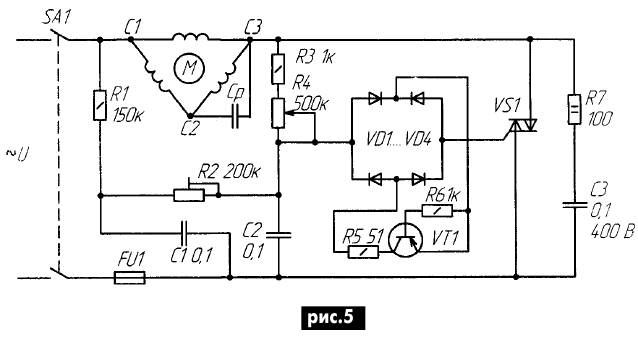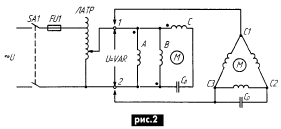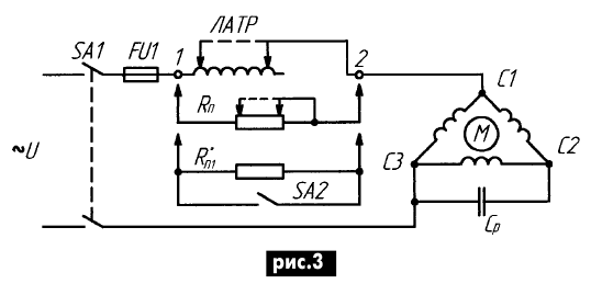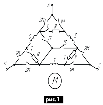 ЭНЦИКЛОПЕДИЯ РАДИОЭЛЕКТРОНИКИ И ЭЛЕКТРОТЕХНИКИ О пуске трехфазного двигателя от однофазной сети. Энциклопедия радиоэлектроники и электротехники Энциклопедия радиоэлектроники и электротехники / Электродвигатели В статье рассматриваются отрицательные стороны запуска трехфазных асинхронных двигателей с короткозамкнутым ротором от однофазной сети переменного тока путем переключения его обмоток статора со звезды на треугольник, приводятся схемы пуска, исключающие эти недостатки. В [1] предлагается запускать мощные (2...7 кВт) и высокоскоростные (3000 об/мин и более) трехфазные электродвигатели (ЭД) от однофазной сети переключением его обмоток статора со звезды на треугольник. Причем нормальным рабочим соединением обмоток является соединение треугольником. То есть речь в заметке идет о пуске серийных трехфазных асинхронных ЭД, рассчитанных на напряжение 220/380 В. Предлагаемый способ пуска, согласно существующей классификации, относится к способам пуска при пониженном напряжении и, как известно, основная цель такого пуска - это снижение пускового тока ЭД, т.к. последний в момент включения в сеть работает практически в режиме короткого замыкания. Пуск ЭД при пониженном напряжении применяют при ограниченной мощности сети. Помимо указанной эмпирической формулы в [2], по которой определяют возможность прямого пуска ЭД, существуют также следующие ограничения по мощности запускаемых напрямую от сети двигателей. При питании ЭД от трансформатора, который работает на чисто силовую сеть, предельная мощность двигателя должна составлять 20% мощности трансформатора при частых пусках и 30% при редких. В случаях работы трансформатора на смешанную нагрузку (силовая и осветительная) предельная мощность ЭД составляет 4% мощности трансформатора при частых пусках и 8% при редких. При питании ЭД от электростанции малой мощности - 12% мощности электростанции. Таким образом, ЭД, которые выходят за пределы этих ограничений, необходимо запускать при пониженном напряжении, что и предлагается автором заметки [1], путем переключения обмоток ЭД со звезды на треугольник. Однако по данному способу пуска помимо [2] необходимо высказать следующие соображения. 1. Асинхронные ЭД при промышленной частоте не могут иметь частоту вращения более 3000 об/мин, как указывает автор [1]: n1=60f1/p=60Ч50=3000 об/мин, где р - число пар полюсов машины. Лишь только асинхронные ЭД двойного питания, о которых автор данной статьи предполагает рассказать в будущем, позволяют удвоить скорость вращения асинхронных ЭД, а именно: получить дополнительно нестандартную синхронную скорость вращения 2000 об/мин и 6000 об/мин при промышленной частоте 50 Гц. Поэтому, что имеет в виду автор [1], когда пишет о запуске ЭД на 3000 об/мин и более, трудно сказать. 2. Практическая реализация предлагаемого им известного способа пуска предполагает наличие у ЭД шести выводных концов. Поскольку ЭД самой распространенной серии 4А мощностью 0,06...0,37 и 0,55...11 кВт имеют три вывода (С1, С2, С3) при соединении обмоток звездой или треугольником [3], то "наши умельцы" как испытывали, так и будут испытывать серьезные трудности по запуску трехфазных ЭД этой серии указанного автором [1] диапазона мощностей (2...7 кВт), т.к. для них использовать предлагаемое переключение обмоток статора со звезды на треугольник невозможно. Если коснуться асинхрон