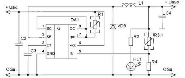 СН выполнен по схеме импульсного понижающего стабилизатора на основе микросхемы КР1156ЕУ5. Здесь условно показано, что допускается изменение величины тока ограничения (R1) и регулировка выходного напряжения (R3). Ток ограничения или максимальный ток нагрузки устанавливается с помощью регулирующего элемента (R1). Развернутая схема переключателей и набора резисторов показана на рис. 5.17.