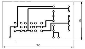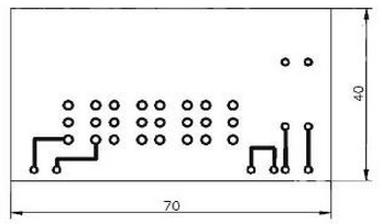 Возможны два варианта закрепления печатных плат на общей плате. Во-первых, можно на общей плате установить разъемы, специально предназначенные для непосредственного соединения с печатной платой (СНП14). Во-вторых (а этот способ проще), можно осуществить закрепление отдельных узлов вертикально с помощью скоб из неизолированной об лужен ной медной проволоки толщиной 0,8-1,0 мм. Она припаивается к плате и загибается с двух сторон. А затем все скобы устанавливаются в отверстия общей платы и также припаиваются. Очевиден существенный недостаток второго способа: неразъемное соединение не позволяет оперативно отключить неисправный узел для ремонтных операций. Несмотря на свою сложность, первый способ (с разъемами) более подходит для усложненного варианта лабораторного источника питания. Если захочется добавить выход стабилизированного напряжения с малыми пульсациями, то это потребует установки еще одной платы с линейным стабилизатором. Это может быть стабилизатор положительного напряжения. Однако довольно часто требуется еще и отрицательное напряжение, например, для питания микросхем операционных усилителей. Поэтому потребуется еще и место для установки платы с микросхемой стабилизатора на отрицательное напряжение. Для удобства работы также можно применить установку фиксированных выходных напряжений с помощью секционированных резисторов. Когда задумывается источник питания не с ограниченным набором функций, а с последующим их увеличением путем постепенной модернизации, то и в конструкции должны быть предусмотрены соответствующие возможности. Проявление предусмотрительности в этом вопросе и увеличение размеров основной платы для установки плат дополнительных узлов позволит при возникновении соответствующей необходимости относительно просто доработать источник питания для увеличения выполняемых функций. Изготовление нашего варианта источника питания надо начинать с подбора требующихся комплектующих. Их перечень приведен в табл. 5.4. Здесь собраны все необходимые радиодетали, но с разделением на платы отдельных узлов. Следующий этап изготовления - это проверка всех радиоэлементов. При выполнении этого условия будет уверенность, что после сборки устройство заработает, а не придется терять время на поиск неисправностей по причине некачественных элементов и производить их демонтаж. Конечно же, еще нужны и печатные платы. Они изготавливаются из фольгированного одностороннего текстолита толщиной 1,5 мм по эскизам, приведенным на рис. 5.24-5.28. Применение печатных плат облегчает монтаж радиоэлементов, но их изготовление связано с определенными навыками и применением химикатов. Можно пойти и по другому, более дешевому и простому пути. Внимательно присмотревшись к рисункам проводников на эскизах печатных плат, можно заметить, что монтаж несложный и его можно провести навесным способом. Более того, этому способствует, например, наличие жестких выводов у трансформатора, переключателей П2К и других элементов. Их можно с успехом использовать как для непосредственного соединения элементов между собой, так и для закрепления монтажных проводников. После проведения монтажа элементов на платы необходимо тщательно проверить правильность установки (особенно полярных элементов) и качество соединений. Убедившись в отсут
