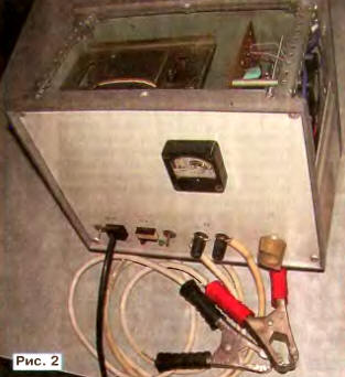 Для начальной проверки работоспособности зарядного устройства к его выходу подключают активную нагрузку мощностью 100. Вт (автомобильную лампу фары с соединенными параллельно нитями). Перед этим регулятор тока зарядки R14 устанавливают в положение максимального сопротивления, что будет соответствовать минимальному току. Нагрузку включал последовательно с контрольным амперметром к выходу зарядного устройства. Убеждаются, что регулятор R14 позволяет изменять зарядный ток в установленных пределах, которые при необходимости можно скорректировать подборкой резистора R15. Затем к выходу устройства подключают аккумуляторную батарею последовательно с контрольным амперметром. Устанавливают по контрольному амперметру зарядный ток 10 А и, перемещая движок резистора R1, устанавливают стрелку микроамперметра РА1 на конечное деление. Автор: Дымов А.