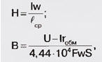 Постепенно увеличивая напряжение, строят зависимость индукции в магнитопроводе В, Тл, от напряженности магнитного поля Н, А/м, подобную показанной на рис. 10, вычисляя эти величины по формулам: где U и I - показания вольтметра PV1, В, и амперметра РА1, A; F - частота, Гц; S - площадь сечения "экспериментального" магнитопровода, см2 ; w - число витков его обмотки. Из полученного графика находят, как показано на рисунке, индукцию насыщения Bs, максимальную индукцию Bm и максимальную напряженность переменного магнитного поля Нт. Для примера рассчитаем сварочный трансформатор, предназначенный для работы от сети переменного тока 220 В, 50 Гц, задавшись напряжением холостого хода Uxx=65 В и максимальным током сварки Imax =150 А. Габаритная мощность трансформатора Pгаб=Uxx·Imax = 65·150=9750 В·А. По известной формуле определяем произведение площади сечения магнитопровода SM на площадь его окна So: где J - плотность тока в обмотках, А/мм2; кс=0,95 - коэффициент заполнения сечения магнитопровода сталью; Kо=0,33...0,4 - коэффициент заполнения его окна медью (алюминием). Предположим, Bm=1.42 Тл, первичная обмотка намотана медным проводом, вторичная - алюминиевым (берем среднее значение плотности тока J=6.5A/мм2): SMSo=9750/(1,11·1,42·6,5·0,37·0,95)= = 2707 см4. Для стержневых трансформаторов рекомендованы [6] следующие соотношения размеров (см. рис. 8): Ь/а-2; с/а=1,6; h/a=2,5...5. Выбрав h/a=4, вычислим размер а, см: Приняв а=40 мм, найдем остальные размеры магнитопровода: b=2а=80мм; с=1,6а=32 мм; h=4а=160мм. ЭДС одного витка обмотки трансформатора на таком магнитопроводе Eв=2,22-10-4Bmabkc=2,22·10-4·1,42·3200·0,95 = 0,958 В. Число витков вторичной обмотки w2=Uxx/Eв=65/0,958=68. Сечение провода вторичной обмотки S2=Imax/J=150/5=30 мм2 (J=5 А/мм2, так как провод вторичной обмотки алюминиевый). Число витков первичной обмотки w1=U1/EB=220/0,958=230. Максимальный ток первичной обмотки I1max=lmax·w2/w1=150-68/230=44,35 А. Сечение медного провода первичной обмотки S1=l1M/J=44,35/8=5,54 мм2. Как первичную, так и вторичную обмотки трансформатора стержневой конструкции обычно делят на две одинаковые части, размещая их на двух кернах магнитопровода. Каждая из последовательно соединенных частей первичной обмотки - 115 витков провода диаметром не менее 2,65 мм. Если же части первичной катушки предполагают соединять параллельно, каждая должна содержать по 230 витков провода вдвое меньшего сечения - диаметром не менее 1,88 мм. Аналогичным образом делят на две части и вторичную обмотку. Если обмотки выполняют цилиндрическими, для получения падающей нагрузочной характеристики трансформатора последовательно со вторичной следует включить резистор сопротивлением 0,2...0,4 Ом из нихромового провода диаметром не менее 3 мм. Для трансформатора с дисковыми обмотками этот резистор не потребуется. К сожалению, точный расчет индуктивности рассеяния такого трансформатора практически невозможен, так как она зависит даже от расположения близлежащих металлических предметов. На практике расчет ведут методом последовательных приближений с корректировкой моточных и конструктивных данных трансформатора по результатам испытаний изготовленных образцов. Подробную методику можно найти в [7]. В любительских условиях трудно изготовить трансформатор с подвижными (для регулировки тока) обмотками. Чтобы получить несколько фиксированных значений тока, делают вторичную обмотку с отводами. Более точную регулировку (в сторону уменьшения тока) прои