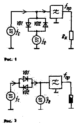 В радиотехнике для борьбы с прямым детектированием сигнала рекомендуется использовать встречно-параллельное включение диодов преобразователя частоты как по напряжению (рис. 1), так и по току (рис. 2). Если воспользоваться этим способом ликвидации прямого детектирования в приемнике А.Захарова, то параллельно переходу база-эмиттер транзистора преобразователя потребуется включить диод в обратном направлении (рис. 3). Однако так поступать нельзя, поскольку в этом случае диод будет закрыт напряжением на переходе база-эмиттер. Чтобы выйти из этого затруднения, предлагаю включить диод последовательно с этим переходом по постоянному току и встречно-параллельно по переменному (рис. 4).