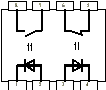 ЭНЦИКЛОПЕДИЯ РАДИОЭЛЕКТРОНИКИ И ЭЛЕКТРОТЕХНИКИ Твердотельные реле серии КР293. Энциклопедия радиоэлектроники и электротехники Энциклопедия радиоэлектроники и электротехники / Справочные материалы Интегральные гибридные микросхемы серии КР293 представляют собой коммутаторы сигналов постоянного и переменного тока с оптоэлектронной развязкой между входом и выходом. По своим электрическим параметрам и функциональным возможностям эти микросхемы во многих областях техники могут заменить электромеханические реле. Данное обстоятельство определило широкое использование в литературе термина "твердотельное реле" для обозначения интегральных схем новой серии коммутационных приборов, принцип работы которых достаточно подробно был рассмотрен в журнале "Радио" N2 за 1995 год. СОСТАВ СЕРИИ В настоящее время в состав серии КР293 входят пять типов твердотельных реле КР293КП1 КР293КП5, каждый из которых образован приборами двух типономиналов, например, КР293КП1 и КР293КП11. В свою очередь каждый типономинал микросхемы содержит три группы (группа А,Б и В). Условные графические изображения интегральных схем серии твердотельных реле представлены на рис.1. Одноканальные реле КР293КП1АВ, КР293КП11АВ, КР293КП3АВ и КР293КП31АВ выполнены в прямо- угольном пластмассовом шестивыводном корпусе 2101-6, а двухканальные микросхемы КР293КП2АВ, КР293КП21АВ, КР293КП4АВ, КР293КП41АВ, КР293КП5АВ и КР293КП51АВ - в восьмивыводном корпусе типа 2101-8. Микросхемы КР293КП1 КР293КП5 предназначены для коммутации сигналов как постоянного, так и пере- менного тока, а КР293КП11 КР293КП51 - только постоянного. Твердотельные реле КР293КП1АВ, КР293КП11АВ, КР293КП2АВ и КР293КП21АВ имеют, так называемые, нормально разомкнутые контакты, т.е. соответствуют реле типа А, а КР293КП3АВ, КР293КП31АВ, КР293КП4АВ и КР293КП41АВ являются реле типа В с нормально замкнутыми контактами. Микросхемы КР293КП5АВ и КР293КП51АВ могут вы- полнять функции реле типа С, работая на переключение.