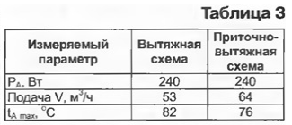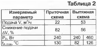 По результатам измерений, приведенным в табл. 3, видно, что после присоединения к вытяжной схеме второго, приточного, вентилятора подача воздуха возросла только на 20 %, a tAmax уменьшилась на 8 %. Следовательно, применение второго, приточного, вентилятора неэффективно. Причины этого явления уже рассмотрены выше.