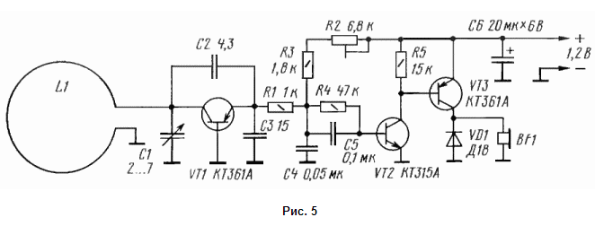 ЭНЦИКЛОПЕДИЯ РАДИОЭЛЕКТРОНИКИ И ЭЛЕКТРОТЕХНИКИ Сверхгенератор. Энциклопедия радиоэлектроники и электротехники Энциклопедия радиоэлектроники и электротехники / Радиоприем Что такое сверхрегенератор, как он работает, каковы его достоинства и недостатки, в каких радиолюбительских конструкциях его можно использовать? Этим вопросам и посвящена предлагаемая вниманию читателей статья. Сверхрегенератор (его еще называют суперрегенератор) - это совершенно особый вид усилительного, или усилительно-детекторного устройства, обладающий при исключительной простоте уникальными свойствами, в частности, коэффициентом усиления по напряжению до 105...106, т.е. достигающим миллиона! Это означает, что входные сигналы с уровнем в доли микровольта могут быть усилены до долей вольта. Разумеется, обычным способом такое усиление в одном каскаде получить невозможно, но в сверхрегенераторе используется совершенно другой способ усиления. Если автору будет позволено немного пофилософствовать, то можно не совсем строго сказать, что сверхрегенеративное усиление происходит в иных физических координатах. Обычное усиление осуществляется непрерывно во времени, а вход и выход усилителя (четырехполюсника), как правило, разнесены в пространстве. Это не относится к усилителям-двухполюсникам, например, регенератору. Регенеративное усиление происходит в том же колебательном контуре, к которому подводится входной сигнал, но опять-таки непрерывно во времени. Сверхрегенератор работает с выборками входного сигнала, взятыми в определенные моменты времени. Затем происходит усиление выборки во времени, и через какой-то промежуток снимается выходной усиленный сигнал, часто даже с тех же зажимов или гнезд, к которым подведен и входной. Пока совершается процесс усиления, сверхрегенератор не реагирует на входные сигналы, а следующая выборка делается только тогда, когда все процессы усиления завершены. Именно такой принцип усиления и позволяет получать огромные коэффициенты, вход и выход не надо развязывать или экранировать - ведь входные и выходные сигналы разнесены во времени, поэтому не могут взаимодействовать. В сверхрегенеративном способе усиления заложен и принципиальный недостаток. В соответствии с теоремой Котельникова-Найквиста, для неискаженной передачи огибающей сигнала (модулирующих частот) частота выборок должна быть не менее удвоенной наивысшей частоты модуляции. В случае радиовещательного АМ сигнала наивысшая модулирующая частота составляет 10 кГц, ЧМ сигнала - 15 кГц и частота выборок должна быть не менее 20...30 кГц (о стерео речь не идет). Полоса пропускания сверхрегенератора получается при этом почти на порядок больше, т. е. 200...300 кГц. Этот недостаток неустраним при приеме АМ сигналов и послужил одной из главных причин вытеснения сверхрегенераторов более совершенными, хотя и более сложными супергетеродинными приемниками, в которых полоса пропускания равна удвоенной наивысшей модулирующей частоте. Как ни странно, при ЧМ описанный недостаток проявляется в значительно меньшей мере. Демодуляция ЧМ происходит на скате резонансной кривой сверхрегенератора - ЧМ превращается в АМ и затем детектируется. При этом ширина резонансной кривой должна быть не меньше удвоенной девиации частоты (100...150 кГц) и получается гораздо лучшее согласование по