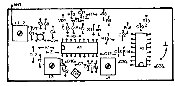 Частота гетеродина микросхемы А1 определяется частотой резонанса кварцевого резонатора Q1, частота которого должна отличаться на 465 кГц от частоты канала (в данном случае Q1 на 27,575 МГц). Катушка L3 служит для облегчения запуска гетеродина, и при хорошем резонаторе и микросхеме может вовсе не потребоваться, но как показывает практика некоторые экземпляры резонаторов и микросхем требуют наличия этой катушки.