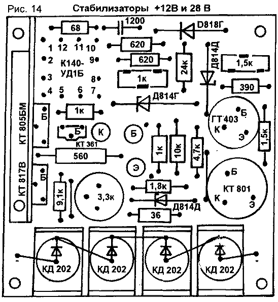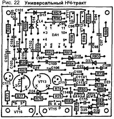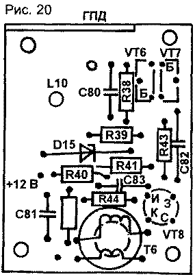 - конденсатор С82 установлен между затвором VT8, R47, R41 с одной стороны и коллектором VT7, базой VT6, С56, S67, C79 - с другой стороны;