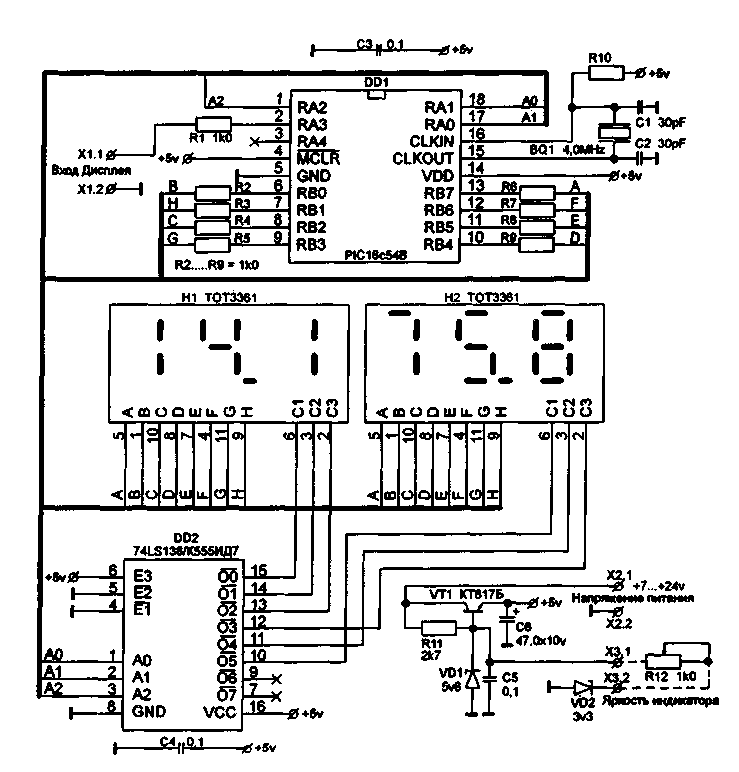 Ïðèíöèïèàëüíàÿ ñõåìà ñâåòîäèîäíîãî äèñïëåÿ DLED1_6