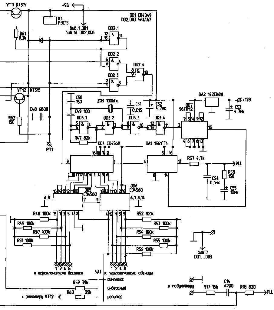 Переключатель SA1 должен быть в положении "репитер". При переводе переключателя SA1 в положение "инверсный" прием/передача осуществляется на частотах репитера. Литература: 1. Радио. - 1990. - N6. - С.23-29.