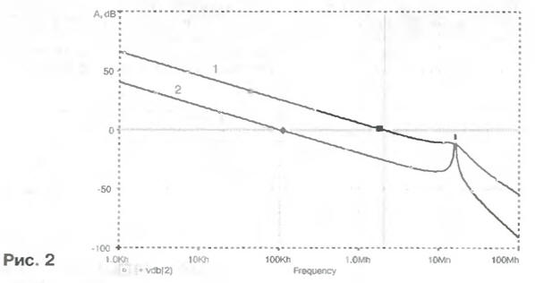 Для получения корректных результатов вычисления нужно вести по правилам арифметики комплексных чисел [2], о чем нередко забывают даже авторы учебников. Например, при фазовом угле петлевого усиления, близком к ±90°, ±270°, амплитудные нелинейности исходного усилителя практически полностью конвертируются в фазовые (т. е. в паразитную фазовую модуляцию, пусть и ослабленную в |рК| раз). При этом паразитная модуляция амплитуды практически исчезает, и получаемые результаты измерений интермодуляционных искажений могут быть на 20...30 дБ более оптимистичными, чем на самом деле покажет анализатор спектра (и слух в случае УМЗЧ). К сожалению, именно так и обстоят дела с большинством ОУ и многими УМЗЧ. Хорошим примером может служить усилитель с токовой обратной связью, описанный Марком Александером [3]. Реальный уровень интермодуляционных искажений (в англоязычной аббревиатуре - IMD) этого усилителя на двухтоновом сигнале с частотами 14 и 15 кГц по анализатору спектра составляет примерно 0,01 %, что хорошо согласуется с графиком зависимости коэффициента гармоник от частоты (примерно 0,007 % на частоте 15 кГц). Если интермодуляционные искажения этого усилителя измерить по стандартной (учитывающей только модуляцию амплитуды) методике, то получаемые значения IMD окажутся намного меньшими. На частоте 7 кГц мы получим только ничтожные 0,0002 %, а на 15 кГц - около 0,0015 %, что существенно ниже реальных значений (около 0,005 и 0,01 % соответственно). Этот эффект вскользь отмечен и в работе Матти Оталы [4]. Следующий момент Важно понимать, что ООС не может снизить абсолютную величину приведенных к входу продуктов искажений и шумов по сравнению с ситуацией, когда петля ООС разомкнута, а уровни сигнала на выходе в обоих случаях одинаковы. На достаточно высоких частотах усиление у любого усилителя падает; как следствие, увеличивается и разностный сигнал в усилителе с ООС. Поэтому в области более высоких частот входной и последующий каскады неизбежно начнут проявлять свою нелинейность, поскольку возрастание разностного сигнала в усилителе с ООС возможно почти до удвоенной величины входного [5] из-за сдвига фаз. Отметим также, что при замкнутой петле ООС продукты искажений, особенно высокого порядка, типа "зубцов" переключения плеч выходного каскада, аналогичны высокочастотным входным сии налам и входной ФНЧ тут помочь не может. Именно поэтому для предотвращения катастрофического расширения спектра интермодуляционных искажений при введении ООС крайне желательно обеспечить более быстрый спад огибающей спектра продуктов искажений без ООС, чем скорость спада петлевого усиления. Условие это к сожалению, не только малоизвестно (Боде на него лишь намекает, считая очевидным), но и крайне редко выполняется. По той же причине вводимая для устойчивости частотная коррекция не должна приводить к ухудшению линейности усилителя во всем диапазоне частот вплоть до частоты единичного усиления и даже несколько выше. Наиболее очевидный способ достичь этого - выполнить коррекцию так, чтобы уменьшать непосредственно величину входного сигнала как это и было сделано в известном усилителе М. Оталы (рис. 1). Отметим, что используемое здесь "гашение" разностного сигнала на входе цепочкой R6C1 дает в итоге гораздо лучший результат чем шаблонная схема частотной коррекции по типу ОУ, несмотря на нал
