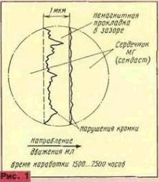 ЭНЦИКЛОПЕДИЯ РАДИОЭЛЕКТРОНИКИ И ЭЛЕКТРОТЕХНИКИ Ферритовые магнитные головки для звукозаписи и особенности их применения. Энциклопедия радиоэлектроники и электротехники Энциклопедия радиоэлектроники и электротехники / Аудиотехника В первой части статьи рассмотрены конструкции ферритовых магнитных головок, выпускаемых в СНГ серийно: указаны их параметры, отмечены особенности применения. В последующих частях описана технология изготовления головок, приведены дополнительные методики измерения параметров головок и рекомендации по регулировке магнитофонов с такими головками. Эти сведения будут полезны радиолюбителям и специалистам, занимающимся ремонтом и конструированием аппаратуры магнитной записи звука. Эпоха доминирования кассетных магнитофонов, вероятно, подходит к концу. Однако учитывая экономические соображения и наличие у населения огромного количества фонограмм на компакт-кассетах, можно предположить, что в нашей стране она продлится и, по крайней мере, еще 15-20 лет кассетные магнитофоны будут служить своим владельцам. На страницах "Радио" уже появлялись публикации, посвященные магнитным головкам (МГ) для звукозаписи [1, 2]. И все же информации, в частности о ферритовых МГ, к сожалению, явно недостаточно. За последние десять лет можно припомнить лишь несколько материалов о ферритовых головках, появившихся в [3,4,5]. Более того, в некоторых материалах [1,2] были допущены неточности, приводящие к серьезным проблемам при их использовании. Автор попытался дать более полную информацию о ферритовых МГ, выпускаемых в настоящее время, и рассказать об особенностях их применения в кассетных магнитофонах. Как под общим названием "металлические" МГ подразумеваются головки из разных материалов (пермаллой, сендаст, аморфные сплавы), так и под названием "ферритовые" (или "стеклоферритовые") МГ имеются в виду головки из разных материалов с различной технологией изготовления, что существенно влияет на их параметры и эксплуатационные свойства. Для отечественных МГ информация о материалах и технологии изготовления заключена в двузначном числе - номере модификации - после точки в условном обозначении МГ. Определенным технологиям и материалам соответствуют конкретные области номеров модификаций; это было стандартизовано еще в 70-х годах и, за редким исключением, действует сейчас (табл. 1), Зарубежные фирмы маркируют головки по самым разным (зачастую закрытым) внутрифирменным стандартам, поэтому необходимую информацию из обозначения зарубежной МГ извлечь практически нельзя. Самое очевидное достоинство ферритовых МГ - их долговечность - определяется материалом рабочей поверхности. Различают ферриты поликристаллической и монокристаллической структуры. Поликристаллические ферриты, применяемые для изготовления МГ, получают либо по технологии горячего прессования - горячепрессованные ферриты (ГПФ), либо по технологии изостатического прессования (ИПФ) или "Oxostat". При изостатическом прессовании сжатие пресс-порошка происходит равномерно со всех сторон, при горячем же прессовании - только в одном направлении. В результате пористость ГПФ марки 10000 МТ-1 не превышает 0,5 %, а феррита марки 10000 МТ-2 (ИПФ) - не более 0,1%, Широко применяемый для изготовления стирающих головок прессованный (на стадии формовки) феррит М1500НМЗ ([1]) имеет пористост