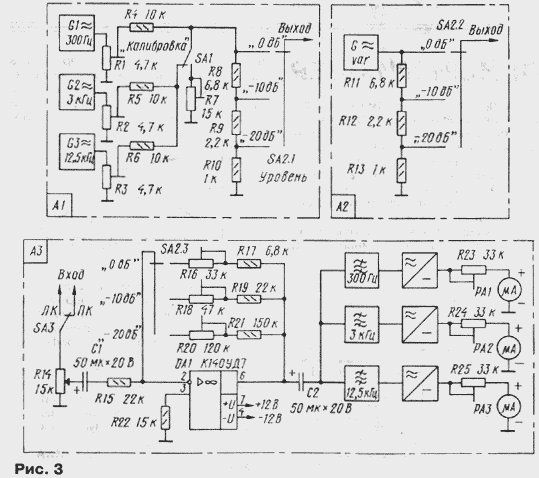ЭНЦИКЛОПЕДИЯ РАДИОЭЛЕКТРОНИКИ И ЭЛЕКТРОТЕХНИКИ Снова о доработке магнитофонов. Энциклопедия радиоэлектроники и электротехники Энциклопедия радиоэлектроники и электротехники / Аудиотехника Качество звуковоспроизведения современного кассетного магнитофона может быть не хуже, чем у недорогого проигрывателя компакт-дисков. О том, как улучшить качество некоторых магнитофонов отечественного производства и подтянуть их к этому уровню, рассказано в этой статье. С появлением цифровых способов записи звука в последние годы значительно возросли требования, предъявляемые любителями к бытовой аппаратуре магнитной записи (БАМЗ). Потеря качества при перезаписи с компакт-диска (КД) на кассетный магнитофон производства восьмидесятых - начала девяностых годов оказалась слишком большой. Однако переход исключительно на КД требует немалых материальных затрат: цены на них достаточно высоки, а стоимость проигрывателя среднего класса превышает 150 долларов США. Высококачественный же кассетный магнитофон импортного производства стоит еще дороже, а отечественные аппараты не в состоянии конкурировать на рынке. На страницах "Радио" и другой радиотехнической литературы неоднократно публиковались материалы о доработке отечественных кассетных магнитофонов, позволяющие повысить качество записи и воспроизведения [1]. Однако затраты на реализацию многих рекомендаций не всегда окупались: нередко требовалась кардинальная переделка самого магнитофона. Кроме того, необходимые для настройки приборы имеются далеко не у каждого радиолюбителя. Методики настройки, предлагаемые авторами ряда публикаций, зачастую "расплывчаты" и не содержат конкретных советов по регулировке аппаратуры. Многие из перечисленных недостатков учтены в публикуемой статье. Главным образом рекомендации автора относятся к кассетному магнитофону, имеющему лучшие по сравнению с катушечным эксплуатационные удобства. Впрочем, предлагаемая доработка позволит несколько увеличить динамический диапазон в области высоких частот и катушечного магнитофона. Итак, какой же магнитофон стоит дорабатывать? Прежде всего, следует оценить качество исполнения и работу лентопротяжного механизма (ЛПМ) магнитофона. Его доработка - отдельная тема: кардинальное улучшение ЛПМ связано с выполнением точных токарных работ (что не всегда возможно) и в данной статье не рассматривается. Надо отметить, что в отечественной БАМЗ выпуска 80-х годов наилучшие ЛПМ установлены в магнитофонах-приставках "Вильма" всех моделей, "Санда МП-207С", "Вега МП-120С", "Вега МП-122С", "Морион МП-101С", "Яуза МП-220С", "Яуза МП-221С". Что касается ЛПМ магнитофонов "Маяк" (почти всех моделей), "Комета", "Нота", то они не обеспечивают высокой стабильности протяжки ленты и не позволяют точно установить моменты подмотки и подтормаживания. Из-за применения в них асинхронных двигателей точная установка скорости движения ленты практически невозможна, а двигатели постоянного тока, появившиеся в поздних моделях, имеют малую мощность и не обеспечивают высокой стабильности движения ленты, особенно при переключении режима работы другого ЛПМ (в двухкассетных магнитофонах). Это относится к моделям "Маяк МП-242С", "Маяк МП-240С", "Комета МП-225С-1". Доработка же электронных узлов магнитофонов с некачественным ЛПМ, переделка которого обычно сложна, пр