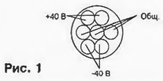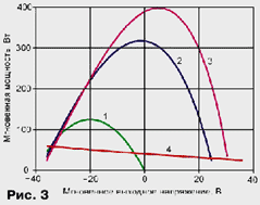 Усилитель (рис. 1) состоит из следующих узлов: входного ФНЧ второго порядка с частотой среза 48 кГц, "мягкого" ограничителя уровня сигнала, собственно усилителя мощности, выходной LRC-цепи, а также каскадов автоматической балансировки по постоянному току и компенсации сопротивления проводов (схема четырехпроводного подключения нагрузки). Кроме того, предусмотрен вспомогательный усилитель сигнала в суммирующей точке УМЗЧ. Появление заметного напряжения на инвертирующем входе усилителя, охваченного параллельной ООС, свидетельствует о нарушении слежения в петле обратной связи и, соответственно, об искажениях, какими бы причинами они ни были бы вызваны. Этот дополнительный усилитель усиливает сигнал искажений до уровня, необходимого для работы индикатора искажений. В сигнальном тракте усилителя используются ОУ КР140УД1101, редко применяемые в аудиоаппаратуре, но обладающие, несмотря на давность разработки (Боб Добкин разработал его прототип LM118/218/318 еще в начале 70-х годов), уникальной комбинацией характеристик. Так, перегрузочная способность для дифференциального входного сигнала у К(Р)140УД11(01) в 40 раз лучше, чем у традиционных "звуковых" ОУ. Одновременно с этим у него отличные скорость нарастания и произведение усиления на полосу (50x106 Гц на частоте 100 кГц). К тому же этот ОУ очень быстро выходит из перегрузок, а его выходной каскад работает с большим током покоя и имеет высокую линейность еще до охвата обратной связью. Единственный его недостаток - спектральная плотность ЭДС шума у этого ОУ примерно вчетверо выше средней для малошумящих приборов. В УМЗЧ, однако, это не имеет большого значения, поскольку отношение максимального сигнала к шуму получается не хуже 110 дБ, что вполне достаточно при данной мощности. В сигнальном тракте ОУ используются в инвертирующем включении с целью устранения искажений, вызываемых наличием синфазного напряжения на входах. Собственно усилитель мощности построен по усовершенствованной "классической" структуре [3, 5] - на входе для обеспечения высокой точности включен ОУ, затем следуют симметричный усилитель напряжения на основе "сломанного каскода" и выходной каскад на основе трехкаскадного эмиттерного повторителя. За счет, казалось бы, мелких усовершенствований и конструктивных мер (рис. 2) реальное качество звучания и воспроизводимость параметров этого усилителя радикально улучшены по сравнению с [3, 5, 6]. В выходном каскаде, рассчитанном на нагрузку 4 Ом, использовано не менее восьми транзисторов в плече. Несмотря на кажущуюся избыточность и громоздкость, такое решение совершенно необходимо при работе на реальную комплексную нагрузку по двум причинам. Первая, и наиболее важная, состоит в том, что при работе на комплексную нагрузку резко увеличивается мгновенная мощность, выделяемая на выходных транзисторах. На рис. 3 приведены графики зависимостей величины мгновенной мощности, рассеиваемой на выходных транзисторах, от мгновенного значения выходного напряжения для разных нагрузок (кривые 1-3) при напряжении питания +40 В. Кривая 1 соответствует работе УМ на чисто активную нагрузку с сопротивлением 0,8 от номинального (т. е. 3,2 Ом), кривая 2 - на комплексную нагрузку с модулем импеданса 0,8 от номинального и фазовым углом 45 град. (требование ОСТ.4.ГО.203.001-75), а кривая 3 - при фазовом угле 60 град. Из графиков вид