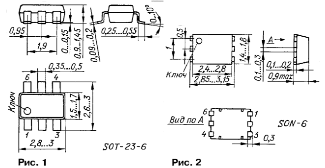 Их выпускают в нескольких конструктивных модификациях: NCP802SN1T1 - в малогабаритном пластмассовом корпусе SOT-23-6 (рис. 1), а NCP802SAN1T1 и NCP802SAN5T1 - в пластмассовом корпусе SON-6 (рис. 2) еще меньших размеров.
