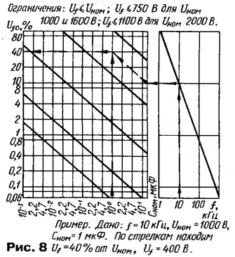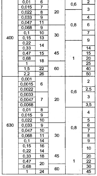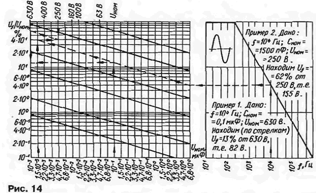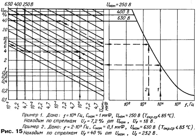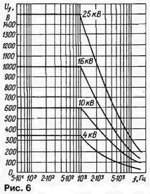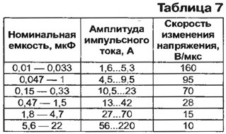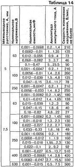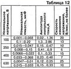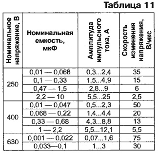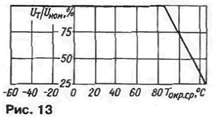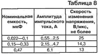 Зависимость допускаемого напряжения UT от температуры окружающей среды Тср показана на рис. 11. Зависимость допускаемой амплитуды переменного или синусоидальной составляющей пульсирующего напряжения Uf от частоты f представлена на рис. 15. В табл. 11 сведены предельно допускаемые амплитуда импульсного тока и скорость изменения напряжения. Авторы: Г.Демиденко, В.Хаецкий, г.Санкт-Петербург