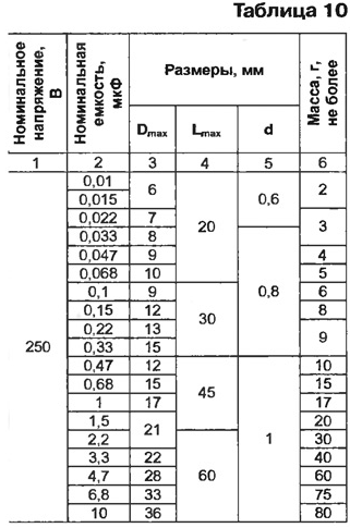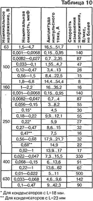 Ассортимент выпускаемых конденсаторов К78-37 представлен в табл. 10.