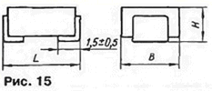 К73-31 Металлопленочные конденсаторы К73-31 предназначены для работы в цепях постоянного, переменного, пульсирующего и импульсного тока. Рассчитаны на поверхностный монтаж на печатную плату. Выпускают в двух конструктивных вариантах - опрессованные и незащищенные. Корпус - прямоугольный; выводы - пластинчатые луженые, прижатые к корпусу (рис. 15). ширина выводов - 4 и 5 мм. Климатическое исполнение - УХЛ (см. К73-11).