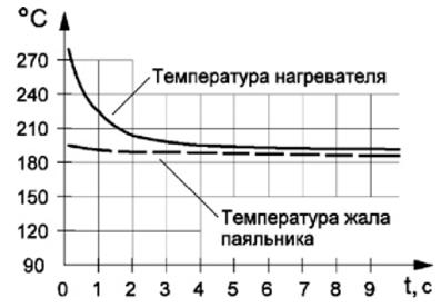 ЭНЦИКЛОПЕДИЯ РАДИОЭЛЕКТРОНИКИ И ЭЛЕКТРОТЕХНИКИ Термостабилизатор жала паяльника. Энциклопедия радиоэлектроники и электротехники Энциклопедия радиоэлектроники и электротехники / Технологии радиолюбителя Автор предлагает доступное для повторения устройство для поддержания оптимальной температуры жала паяльника путем измерения сопротивления нагревателя во время кратковременных отключений его от сети. На страницах радиотехнических журналов неоднократно публиковались различные устройства управления температурой жала паяльника, использующие нагреватель паяльника в качестве датчика температуры и поддерживающие ее на заданном уровне. При ближайшем рассмотрении оказывается, что все эти регуляторы являются всего лишь стабилизаторами тепловой мощности нагревателя. Они, конечно, дают определенный эффект: меньше выгорает жало и паяльник не так сильно перегревается, пока лежит на подставке. Но это еще далеко до управления именно температурой жала. Рассмотрим кратко динамику тепловых процессов в паяльнике. На рис. 1 представлены графики изменения температуры нагревателя и жала паяльника с момента выключения нагревателя. На графиках видно, что в первые доли секунды разность температур настолько велика и непостоянна, что температуру нагревателя в этот момент никак нельзя использовать для точного определения температуры жала, а именно так работают все ранее опубликованные регуляторы, в которых нагреватель используют в качестве датчика температуры. Из рис. 1 видно, что кривые зависимости температуры жала и нагревателя от времени его выключения только через две и тем более три-четыре секунды достаточно сближаются для того, чтобы с достаточной точностью интерпретировать температуру нагревателя как температуру жала. Кроме того, разность температур становится не только малой, но и практически постоянной. По мнению автора, именно регулятор, измеряющий температуру нагревателя через определенное время после его отключения, способен более точно управлять температурой жала.