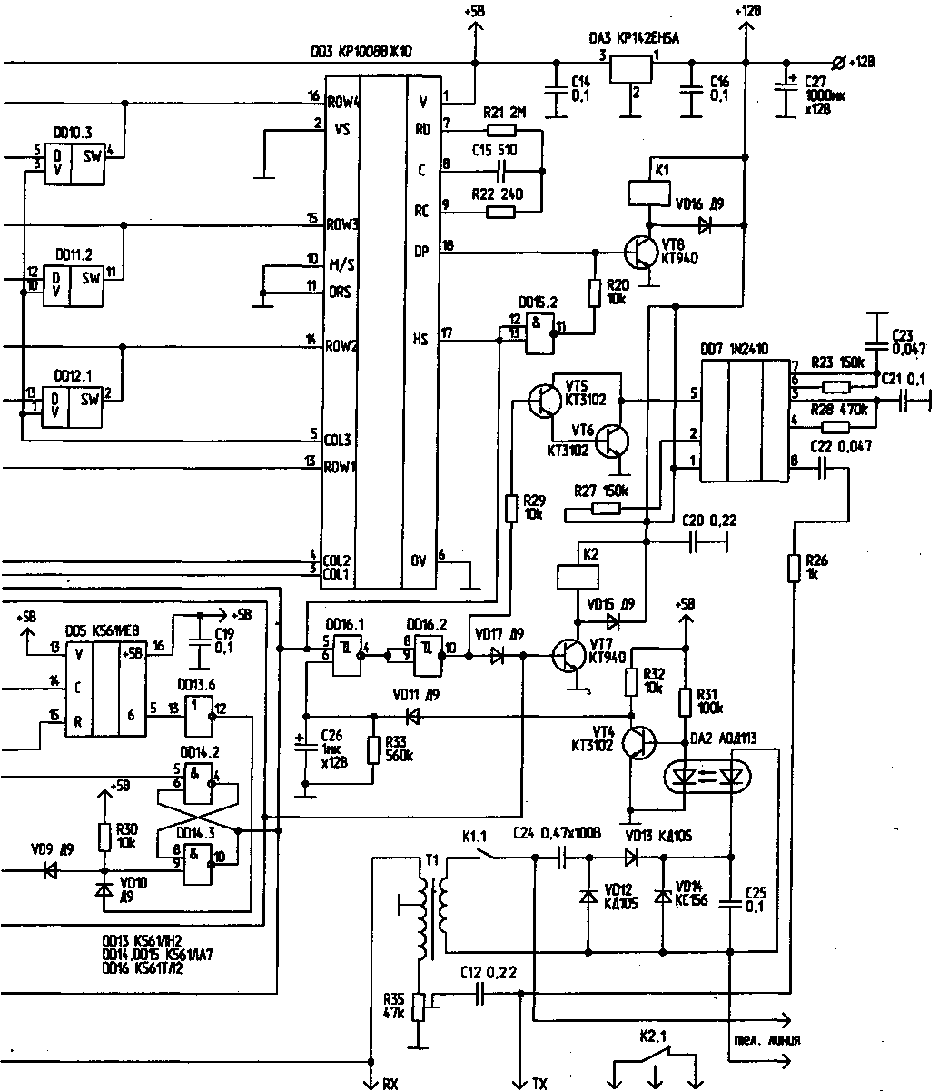 - генератора, управляющего переключением прием-передача, собранного на D12.4,D13.3...13.5, D14.1, D15.1;