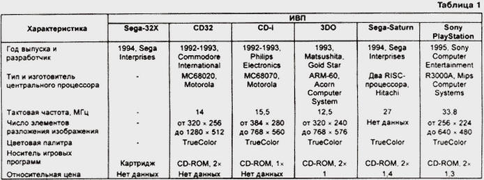 ЭНЦИКЛОПЕДИЯ РАДИОЭЛЕКТРОНИКИ И ЭЛЕКТРОТЕХНИКИ SONY PLAYSTATION, или Особенности схемотехники 32-битных видеоприставок. Энциклопедия радиоэлектроники и электротехники Энциклопедия радиоэлектроники и электротехники / Телевидение Для любителей видеоигр сегодня выпускается широкий ассортимент игровых видеоприставок (ИВП): от "Dendy" до "Nintendo Ultra-64". Продолжая серию статей о схемотехнике подобных устройств, автор рассказывает о "Sony PlayStation" - японской 32-битной ИВП, покорившей весь игровой мир. Представленные сведения не только облегчат ее грамотную эксплуатацию и самостоятельный ремонт, но и расширят технический кругозор читателей. Несмотря на недолгую историю развития 32-битных ИВП, она уже ознаменовалась конкурентной борьбой транснациональных корпораций, производящих компьютерную технику. Сравнительные характеристики наиболее известных приставок данного класса приведены в табл. 1. Их можно условно разделить на "экзотические" и "стандартные" К первым относятся малораспространенные или узкопрофильные ИВП: "Sega32X" - оригинальная "приставка к приставке", расширяющая возможности 16-битной "Sega Mega Drive-2"; "Philips CD-i" - многофункциональная приставка к телевизору для воспроизведения информации с интерактивных оптических дисков формата CD-i; "Commodore CD32" или "CDTV" - проект, опередивший свое время, способствовал началу распространения игровых программ на CD-ROM, но фирме-разработчику не хватило упорства и средств для завоевания рынка. "Стандартными" 32-битными ИВП можно считать "3DO" [1], "Sega Saturn", "Sony PlayStation" и их многочисленные клоны. Общие характеристики этих изделий: игровые программы хранятся на лазерных компакт-дисках (CD), телевизионное изображение формируется в стандартах NTSC или PAL со стереозвуком, предусмотрены разнообразные периферийные устройства (от "лазерного" пистолета до автомобильного руля с педалями), имеется возможность прослушивать обычные музыкальные CD, работать с дисками форматов Photo-CD и Video-CD. Приставка "3DO", имея довольно скромные технические характеристики, пользуется успехом, так как появилась на рынке немного раньше своих конкурентов. ИВП "Sega Saturn" мешают стать популярной неудачная ценовая политика и недостаточная программная поддержка. Тем не менее некоторое время она считалась основным конкурентом "Sony PlayStation" (в дальнейшем будем называть ее просто "PlayStation"), которую многие считают лучшей из 32битных ИВП. Это подтверждается большим числом (известно более 600) игровых программ для нее, создаваемых такими известными фирмами, как Electronic Arts, Mindscape, Capcom, Konami, Lucas Arts, Disney Software. Скоростные трехмерные игры с "живым" изображением и виртуальной камерой обзора близки по уровню к реализуемым на компьютерах с процессором Pentium младших моделей. Первые модели "PlayStation", рассчитанные на японский, американский или европейский телевизионные стандарты, не были полностью совместимыми. Более поздние стали универсальными и работают с CD как фирменного, так и южноазиатского производства. Схемотехника и конструктивно-технологическое оформление "PlayStation" продуманы весьма тщательно. Относительно высокая цена окупается повышенным качеством и надежностью. КАК УСТРОЕНА "PLAYSTATION" Далее речь пойдет об одной из последних моделей "PlayStation" - SCPH5502. Рассматривая ее устройство, будем, по возможности, пользоваться позиционными обозначениями элементов, маркированными на печатных платах, 