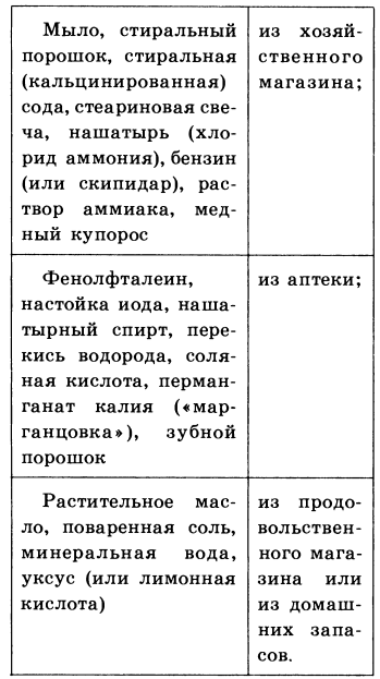 Между прочим, чуть ли не в каждом магазине, где продают нужные в домашнем хозяйстве вещи, есть отдел химических товаров. Страшно и подумать, как наши далекие предки, не знавшие ни мыла, ни стиральных порошков, отмывали свою грязную одежду в речной воде... Нет, я не собираюсь учить тебя, как правильно стирать. Но коль скоро и стирка, и многое другое имеют прямое отношение к химическим чудесам, давай поставим опыты, которые помогут тебе понять, что же при этом происходит. И может быть, набравшись новых знаний, ты кое-что будешь делать лучше и быстрее Маленький кусочек хозяйственного мыла положи в пузырек с теплой водой, закрой пузырек пальцем и взболтай хорошенько. К мыльному раствору добавь несколько капель раствора фенолфталеина. Малиновый цвет, как ты помнишь, свидетельствует о том, что перед нами основание. Или, как часто говорят химики, у этого раствора щелочная реакция (щелочи - самые распространенные и очень активные основания; мы с ними напрямую стараемся дела не иметь, потому что они очень едкие). Давно было известно, что мыло, растворяясь, взаимодействует с водой и образует пусть слабую, но щелочь. И думали, что именно поэтому мыло и снимает грязь с рук и белья. И стиральная сода тоже дает щелочной раствор, и она тоже неплохо отстирывает белье, особенно если прокипятить как следует... Но все оказалось не так. Более того, все оказалось наоборот. Сода стирает потому, что она, соединяясь с загрязнениями (а это чаще всего бывает какой-нибудь жир), образует вещества наподобие мыла. Так давай и мы с тобой получим мыло из соды, только не в тазу во время стирки, а заранее, в пробирке или в стакане. Нагрей в кастрюльке немного воды и сыпь в нее порциями стиральную (кальцинированную) соду, постоянно размешивая. Когда сода перестанет растворяться, в твоем распоряжении будет крепкий, как говорят, концентрированный ее раствор. В горячем виде осторожно перелей его в небольшую, но обязательно тонкостенную склянку, лучше всего в пробирку. Пипеткой, каплю за каплей, добавляй растительное масло, пока оно не перестанет растворяться. Масло можно заменить растопленным воском, но тогда, понятно, пипеткой его уже не накапаешь. В склянке образовалось мыло, но пока оно находится там в жидком виде. На мыловаренном заводе такое мыло высаливают, то есть добавляют в раствор соль (самую обычную, поваренную). Поступи точно так же. Одна-две щепотки соли - и твердое мыло всплывет на поверхность. Аккуратно сними его и испытай - как оно мылится, образует ли пену, что за реакция у него с фенолфталеином. К сожалению, из тех веществ, что есть в нашем распоряжении, хорошего мыла, которым можно стирать и умываться, не сделать. Вот если только из стеарина... Возьми несколько обломков от стеариновой свечки (бывают еще парафиновые свечки, они для этого опыта не годятся). Нагрей обломки в тонком стакане, поставленном в очень горячую воду. Когда стеарин расплавится, добавь крепкий раствор стиральной соды. Тут же появится белая масса. Это и есть мыло. Дай ему постоять еще несколько минут в горячей воде, а затем осторожно, чтобы не обжечься (надень рукавицы), вылей в спичечный коробок. Когда масса застынет, у тебя окажется кусочек мыла, которое можно использовать для стирки. А можно поставить и опыт "наоборот": из куска мыла приготовить свечу. Настругай ножом хозяйственного мыла, сложи стружки 