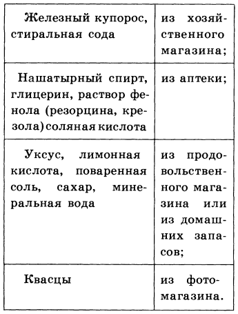 Первым делом запасемся кое-какими растениями: из них мы будем готовить настоящие краски. Но прежде чем отправиться в поле или в лес, прочти объяснения, не слишком долгие. До XIX века люди не знали иных красителей, кроме тех, которые поставляла им природа. Для красок брали размолотые камни, обожженные земли, цветные глины. А когда надо было окрасить ткань для одежды, то употребляли красильные растения. Иногда кору, иногда листья, корни, стебли, цветы. Сейчас почти все красители делают на химических заводах. Лишь иногда, очень редко, кое-какие природные вещества используют для художественных красок. И все реже можно встретить названия, которые прежде были общеизвестны: красный сандал, индиго, кампешевое дерево, кармин. Любопытно бы проверить, в самом ли деле старинные красители так хороши. Но кампешевое дерево растет в Южной Америке... И все же кое-что можно раздобыть, не отправляясь в далекие страны. В привычных нам растениях тоже есть красящие вещества. Их-то мы и извлечем. А чтобы не зря стараться, приготовим самодельные акварельные краски, то есть растворимые в воде. Способ извлечения красителей из всех растений один и тот же: измельчи, положи в чистую эмалированную посуду и долго, несколько часов, кипяти в воде на маленьком огне, чтобы получился крепкий отвар. Поскольку посуда при этом может окраситься, лучше новую кастрюлю не брать. Вымыв посуду как следует, можешь готовить в ней следующий отвар. Имей в виду, что отвар должен быть в меру густым, а не совсем как водичка; если он жиденький, то подержи его еще на огне без крышки, чтобы часть воды испарилась. Досуха упаривать не надо: все равно потом придется растворять в воде. Теперь очень важное замечание. Дальше я буду называть растения по именам, но вполне возможно (и очень даже вероятно), что ты не знаешь, как выглядят все эти травы, деревья и кусты. Посоветуйся с кем-нибудь, кто хорошо разбирается в растениях. Например, с учителем биологии, Или найди в библиотеке справочную книгу по ботанике, В таких справочниках есть обычно и описания растений, и их изображения. Собирая растения, прояви умеренность. Для приготовления отвара вполне достаточно взять несколько экземпляров; сколько именно, заочно сказать трудно, но, во всяком случае, чем крупнее экземпляры, тем меньше их требуется, И безусловно, счет должен идти не на десятки, а на единицы. С какого цвета начнем? С красного! Чтобы получить красный краситель, приготовь отвар из стеблей зверобоя и для яркости добавь немного уксуса. Другой вариант: отвар из корня подмаренника, Третий: из корней конского щавеля (в этом случае добавь к отвару немного квасцов). Четвертый вариант: из ольховой коры, которую до этого надо три-четыре дня вымачивать в воде. Предвижу вопрос: а почему не приготовить краситель из чего-нибудь более привычного, скажем, из свеклы? Потому, что краска будет нестойкой. И еще потому, что свекольный сок чутко реагирует на изменение кислотности. Даже для леденцов и сладких кремов берут не свекольные отвары, а другие, более стойкие - скажем, из черного винограда. Желтый цвет тоже распространен в природе. Для красителя годятся цветы подмаренника, кора орешника, листья, ягоды и кора ольховидной крушины, любые части дрока красильного. Если же взять плоды барбариса, то получится краситель лимонного оттенка. А из стеблей и листьев чистотела - 