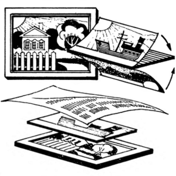 Ñíà÷àëà âû ïîêàçûâàåòå çðèòåëÿì êàðòèíó ñî âñòàâëåííîé â ðàìêó çàñòàâêîé. Ïîòîì êëàäåòå åå ñòîë âíèç ëèöåâîé ñòîðîíîé, à, êîãäà äîñòàåòå èç-ïîä ãàçåòû, çàñòàâêó îñòàâëÿåòå íà ñòîëå è ïîêàçûâàåòå çðèòåëÿì âòîðîé ðèñóíîê. Çàòåì ïðèïîäíèìàåòå êðàé ãàçåòû âìåñòå ñ çàñòàâêîé è êëàäåòå ïîä íèõ êàðòèíó ââåðõ ëèöåâîé ñòîðîíîé. Çàñòàâêà îêàæåòñÿ â ðàìêå ñâîåé äðóãîé ñòîðîíîé.