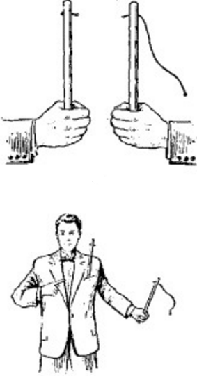 Ôîêóñíèê áåðåò äâå ïàëî÷êè, ñëîæåííûå âìåñòå, è òÿíåò çà êîí÷èê âåðåâî÷êè, òîð÷àùåé â âåðõíåé ÷àñòè îäíîé èç ïàëî÷åê. Âåðåâî÷êà ëåãêî âûòÿãèâàåòñÿ íàðóæó. Çàòåì àðòèñò òÿíåò çà âåðåâî÷êó ñî ñòîðîíû âòîðîé ïàëî÷êè, ïîâåðíóâ ïàëî÷êè â ýòî âðåìÿ â ãîðèçîíòàëüíîå ïîëîæåíèå. Âåðåâî÷êà, ïîÿâëÿÿñü ñî ñòîðîíû îäíîé ïàëî÷êè, èñ÷åçàåò ñî ñòîðîíû äðóãîé (ðèñ.1).