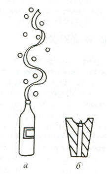 Ýôôåêò ýòîãî ôîêóñà ñîñòîèò â òîì, ÷òî èç áîëüøîé áóòûëêè íåîæèäàííî âûñîêî ââåðõ, ñ õëîïêîì âûëåòàåò ïîòîê ðàçíîöâåòíûõ ëåíò è ðàçëåòàåòñÿ âî âñå ñòîðîíû áóìàæíîå êîíôåòòè (ðèñ. à).