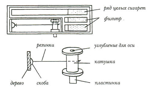 Ñåêðåò ôîêóñà - â óñòðîéñòâå ïà÷êè. Âíóòðè íåå â çàìêíóòîì ïðîñòðàíñòâå, ïîâåðõ êîòîðîãî óëîæåí ðÿä öåëûõ ñèãàðåò, ðàñïîëîæåíà êàòóøêà, ñîåäèíåííàÿ ðåçèíêîé, êîòîðàÿ, â ñâîþ î÷åðåäü, äðóãèì êîíöîì ïðèâÿçàíà ê ñêîáå. Ýòî óñòðîéñòâî (åñëè îòêðûòü ïà÷êó) ñíèçó ñêðûòî îò ãëàç çðèòåëåé â äâà ðÿäà ïîäêëååííûìè ôèëüòðàìè îò ñèãàðåò. Èç êàòóøêè òîð÷èò ïëîñêàÿ ïëàñòèíêà, êîòîðàÿ íåìíîãî âûõîäèò íàðóæó èç ïà÷êè (ðèñ.à).
