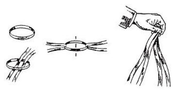 Äëÿ äåìîíñòðàöèè ôîêóñà íóæíû äâå øèðîêèå, äëèííûå øåëêîâûå ëåíòû îäíîãî öâåòà, ïî 2 ì êàæäàÿ, è êóñîê òàêîé æå ëåíòû äëèíîé 20-45 ñì, ñøèòûé â êîëüöî íèòêàìè â öâåò ëåíòû.