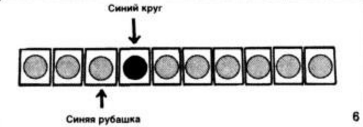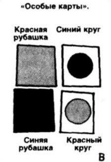 6. Если выбранной окажется карта с синим кругом (четвертая), переверните лицом вверх все карты, лежащие лицом вниз, чтобы показать - на лице каждой карты круг красный, кроме выбранной карты.