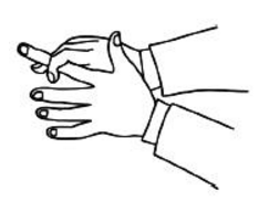Ïîäâåäèòå ëåâóþ ðóêó ê âûïðÿìëåííîé ïðàâîé ðóêå ñëåâà è íàëîæèòå ëåâûé óêàçàòåëüíûé ïàëåö íà ïðàâûé óêàçàòåëüíûé ïàëåö. Ïðè ýòîì ïðàâûé óêàçàòåëüíûé ïàëåö äîëæåí âûäàâàòüñÿ âïåðåä ÷óòü ëè íå íà ïîëîâèíó ñâîåé äëèíû.