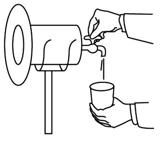 òîé ðóêå, êîòîðàÿ îòêðûâàåò êðàí, íàõîäèòñÿ ðåçèíîâàÿ ãðóøà, íàïîëíåííàÿ âîäîé. Ñæèìàÿ ýòó ãðóøó, âû âûëèâàåòå èç íåå âîäó ïðÿìî â ñòàêàí.