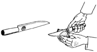Âûòàñêèâàÿ íîæ, ôîêóñíèê çàæèìàåò ëåçâèå íîæà äâóìÿ ïîëîâèíêàìè ëèìîíà, è òàêèì îáðàçîì ìîíåòà îêàçûâàåòñÿ âíóòðè.