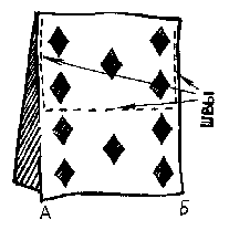 Ñåêðåò çàêëþ÷àåòñÿ â ïëàòêå. Âîçüìèòå 2 ÷åðíûõ ïëàòêà îäèíàêîâîãî ðàçìåðà. Íà îäèí èç íèõ íàêëåéòå êðàñíûå ðîìáèêè, ðàñïîëîæèâ èõ êàê íà äåñÿòêå áóáåí. Ïîëîæèòå ïëàòîê ñ ðèñóíêîì íà ÷åðíûé ïëàòîê è ñøåéòå èõ ìåæäó ñîáîé.